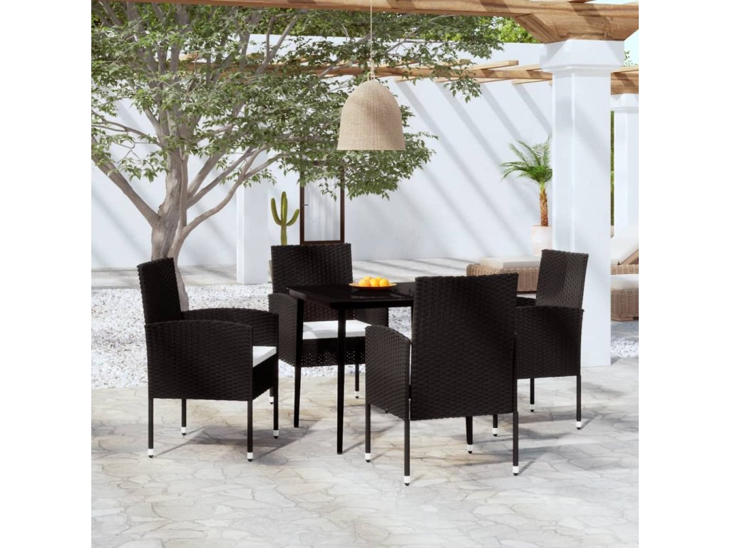 Praktická zahradní jídelní sestava má ocelový rám, takže je pevná a odolná. Zahradní židle jsou vyrobené z voděodolného PE ratanu, jsou tedy nenáročné na údržbu a ideální pro venkovní použití. Hladká skleněná stolní deska, kterou snadno očistíte vlhkým hadříkem, vám výborně poslouží k podávání jídla a pití nebo k vystavení dekorativních předmětů. Tlusté podušky jsou odnímatelné a mimořádně pohodlné.