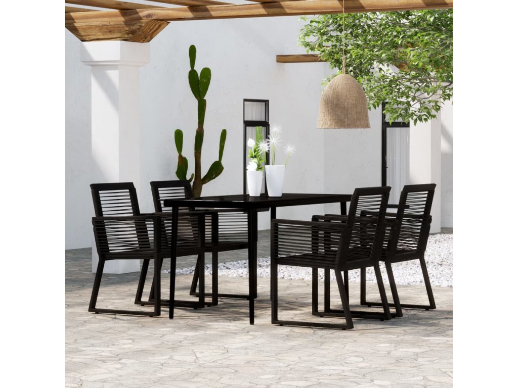 Jídelní stůl má práškově lakovaný ocelový rám, takže je robustní a stabilní a ideální pro každodenní venkovní použití. Hladká skleněná stolní deska se snadno čistí vlhkým hadříkem a skvěle vám poslouží k podávání jídla a pití nebo k vystavení různých dekorativních předmětů. Zahradní židle jsou vyrobeny z PVC ratanu, napleteného na jemně lakovaný ocelový rám, proto jsou stabilní a odolné vůči nepříznivému počasí a UV záření.