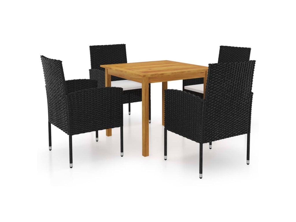 Jídelní stůl je zhotovený z masivního akáciového dřeva s olejovaným povrchem, takže je stabilní, odolný a nenáročný na údržbu. Jídelní židle mají rám z práškově lakované oceli, opletený PE ratanem, který výborně vzdoruje klimatickým vlivům. Dlouho vám proto vydrží a snadno je očistíte. Každé křeslo je opatřené odnímatelnou, hustě polstrovanou poduškou, která vám při odpočinku zaručí mimořádný komfort.