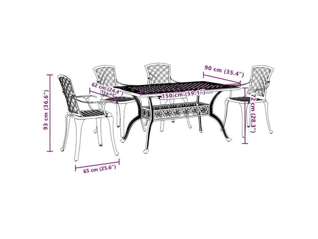 - Robustní a odolný rám: Tento zahradní jídelní set je zhotovený z litého hliníku, je tedy dostatečně robustní a odolný, aby vám zaručil dlouhá léta používání. Materiál je odolný vůči korozi a povětrnostním vlivům, takže jej můžete venku používat po celý rok.