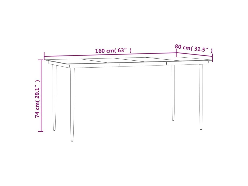 - Rozměry: 160 x 80 x 74 cm (D x Š x V)
