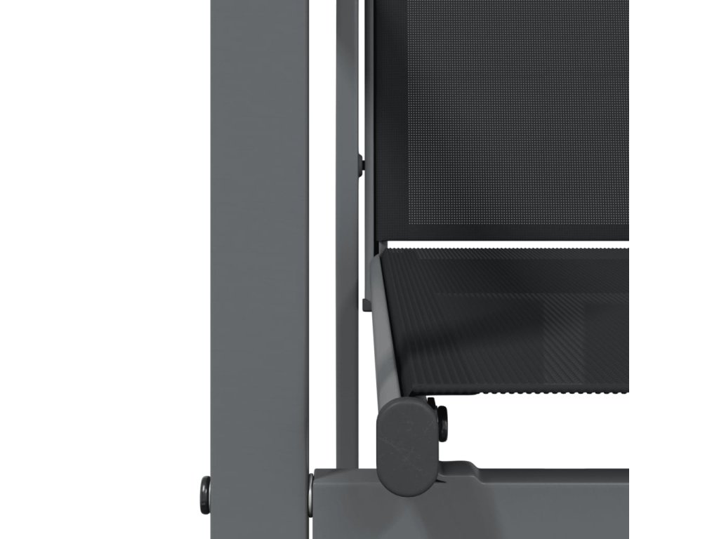 - Materiál: textilen, práškově lakovaná ocel, WPC