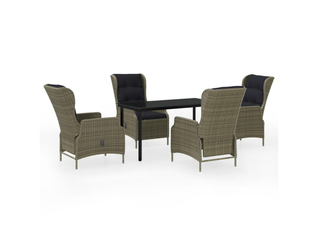 Praktický zahradní jídelní set má ocelový rám, takže je pevný a má dlouhou životnost. Polohovací židle jsou vyrobené z voděodolného PE ratanu, který nevyžaduje žádnou údržbu, hodí se proto skvěle k venkovnímu použití. Hustě polstrované podušky vám při stolování poskytnou maximální pohodlí. Potah podušky je opatřený zipem, lze ho tedy stáhnout a vyprat. Pomocí mechanismu s plynovým pístem si navíc snadno přizpůsobíte opěradlo křesla podle vlastních potřeb. Stisknutím tlačítka na boku ho sklopíte do té nejpohodlnější pozice. Hladká skleněná stolní deska, kterou jednoduše očistíte vlhkým hadříkem, je ideální k podávání jídla a pití nebo k vystavování různých dekorativních předmětů.