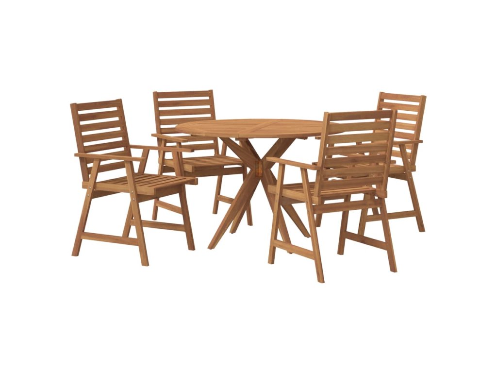 - Masivní akáciové dřevo: Venkovní jídelní set je vyroben z masivního akáciového dřeva, které zajišťuje pevnost a odolnost. Masivní akáciové dřevo je nádherný přírodní materiál. Akáciové dřevo má rovnou kresbu a obsahuje suky, které materiálu dodávají jeho charakteristický, rustikální vzhled.
