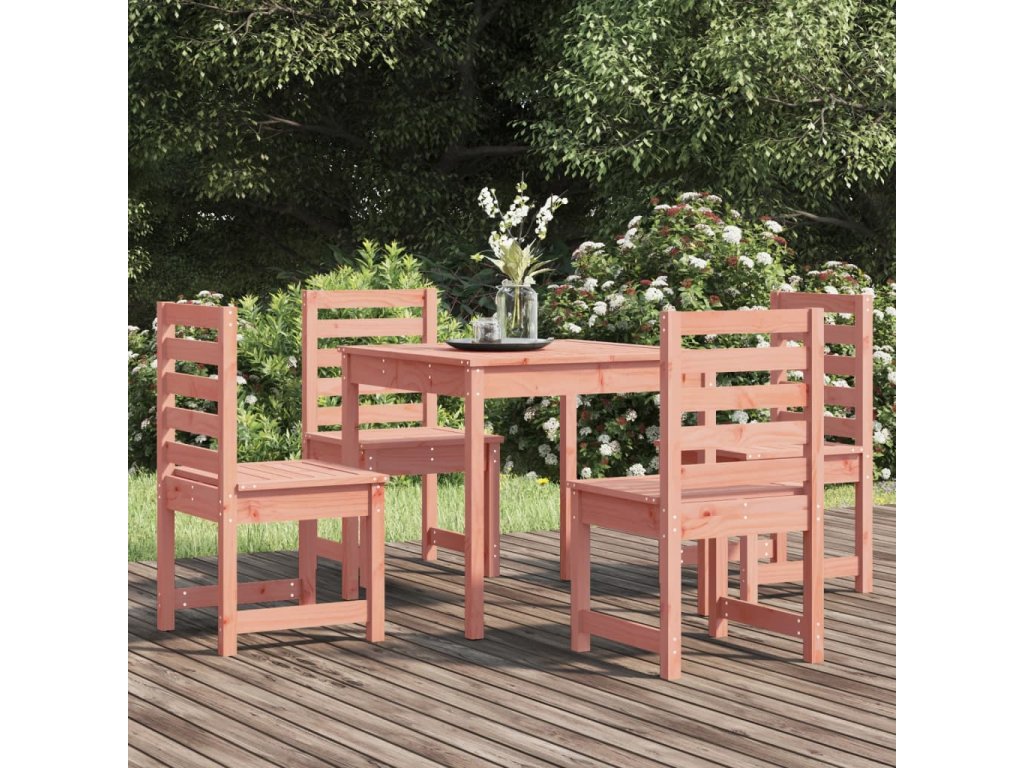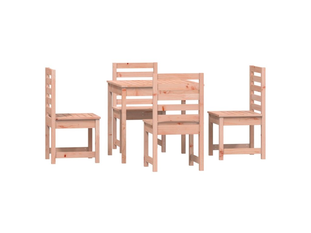 - Masivní dřevo douglasky: Jídelní set je vyroben z masivní douglasky. Masivní dřevo douglasky je vysoce odolný druh dřeva, který se výborně hodí pro venkovní použití. Dřevo douglasky je také pevné a vyžaduje méně údržby i pod vlivem povětrnostních podmínek.