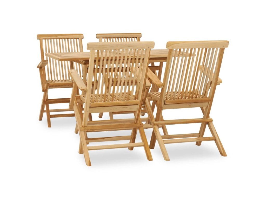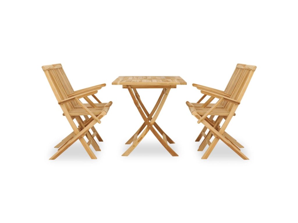 Tato jídelní sestava z masivního teaku je jako dělaná na kempování nebo piknik. Přijde vám také vhod, pokud potřebujete dodatečná místa k sezení.