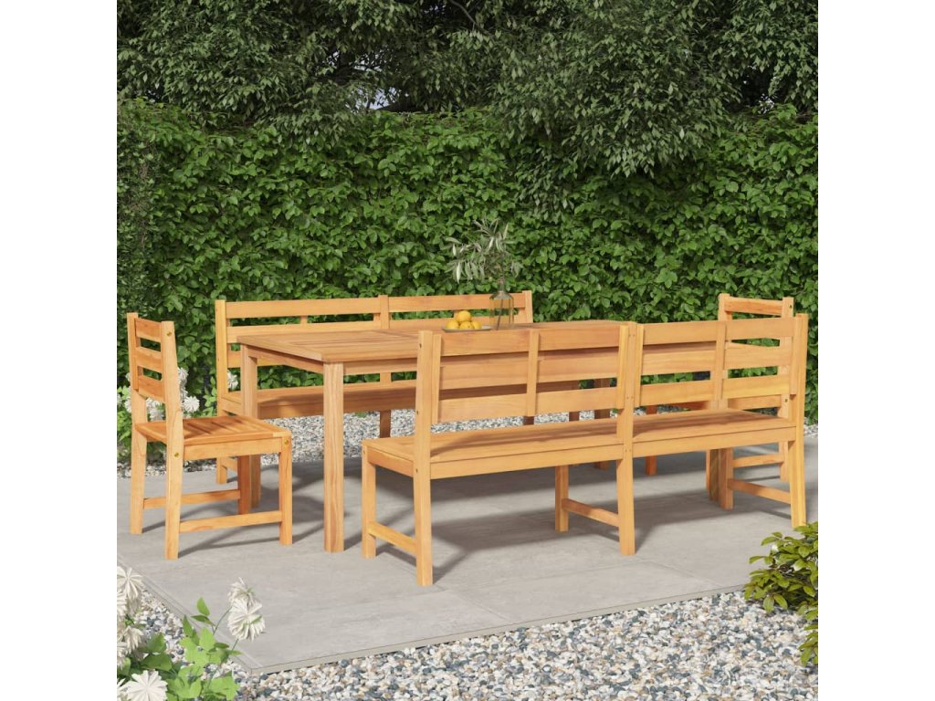 Tento dřevěný zahradní jídelní set s elegantním a moderním designem představuje skvělou volbu pro stolování nebo relaxaci na zahradě.