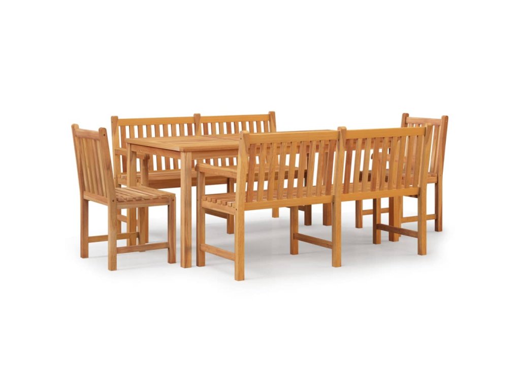 Tento dřevěný zahradní jídelní set s elegantním a moderním designem představuje skvělou volbu pro stolování nebo relaxaci na zahradě.