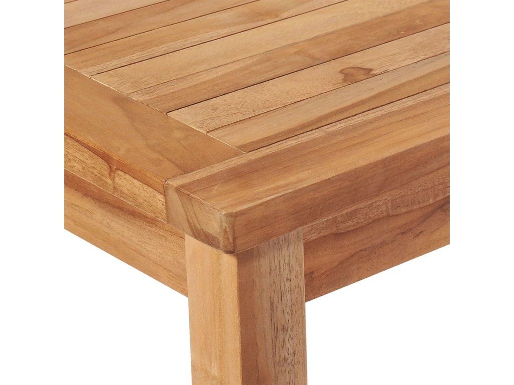 - Masivní teakové dřevo: Masivní teakové dřevo je krásný přírodní materiál. Prošlo již procesem smršťování, bylo uměle vysušené a poté jemně a dohladka obroušené. Teakové dřevo je známé svou výjimečnou pevností a odolností vůči povětrnostním vlivům.