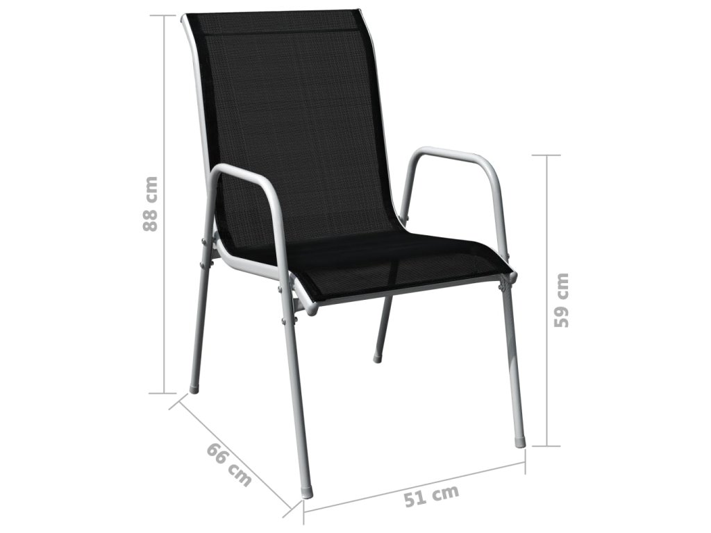 Komfortní židle jsou vyrobeny z kvalitní oceli s práškovým nástřikem. Díky silné textilní látce jsou naše židle odolné vůči počasí a snadno udržovatelné. Židle jsou stohovatelné, aby jste ušetřily místo. Stůl má desku o tloušťce 5 mm, vyrobenou z tvrzeného zvlněného skla, na kterou můžete umístit nápoje, občerstvení nebo dekorativní předměty. Má také robustní ocelový rám s práškovým nástřikem, který je odolný a snadno se udržuje. S otvorem na slunečník uprostřed stolu, jak na vrchu stolu, tak i pod ním, můžete tedy snadno umístit velký baldachýn pro vytvoření stínu během horkého léta. Jeho montáž je také velmi snadná.