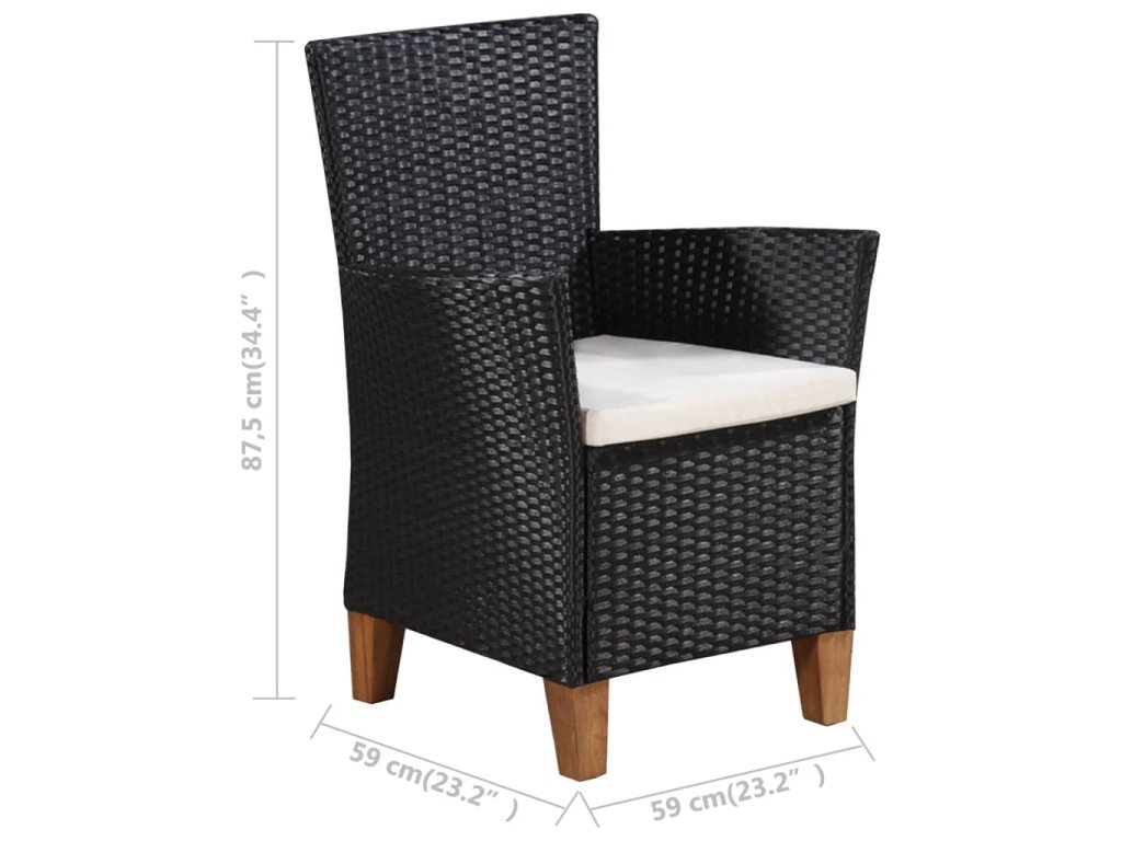 Zahradní stůl je vyroben z masivního akáciového dřeva s olejovaným povrchem, a je tudíž pevný a odolný. Má nadčasový design a vyzařuje rustikální kouzlo. Díky voděodolnému PE ratanu jsou křesílka odolná a nenáročná na údržbu. Ocelové rámy a nohy z masivního akáciového dřeva zajišťují, že jsou zahradní židle pevné a stabilní. Spolu s jídelními židlemi jsou dodávány i pohodlné podušky. Potahy podušek z polyesterové tkaniny jsou nenáročné na údržbu a v případě potřeby je možné je sejmout a vyprat.