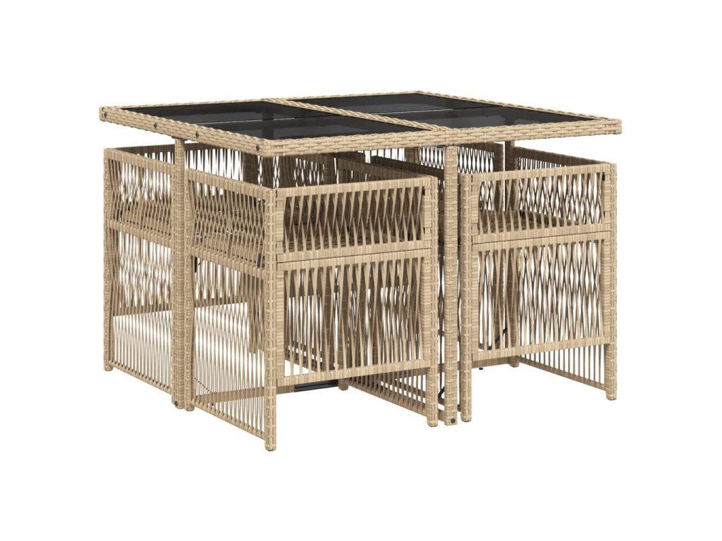 - Materiál: PE ratan, práškově lakovaná ocel, tvrzené sklo