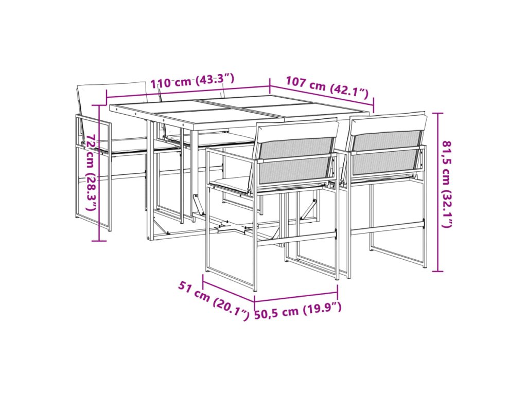 - Robustní a stabilní rám: Ocelový rám s práškovým nástřikem zajišťuje, že zahradní nábytek je pevný a stabilní pro každodenní venkovní použití.