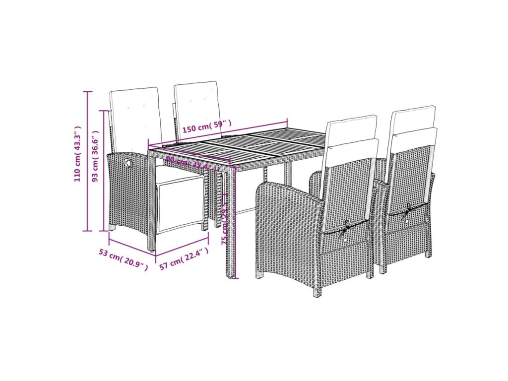 - Materiál: PE ratan, práškově lakovaná ocel, masivní akáciové dřevo
