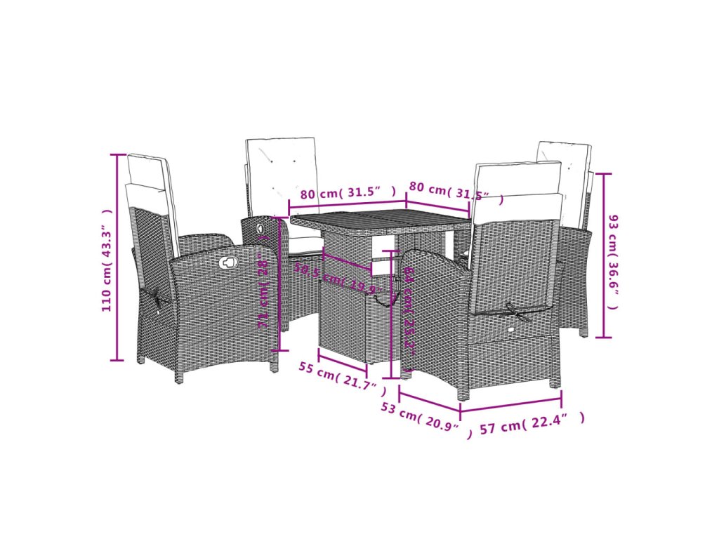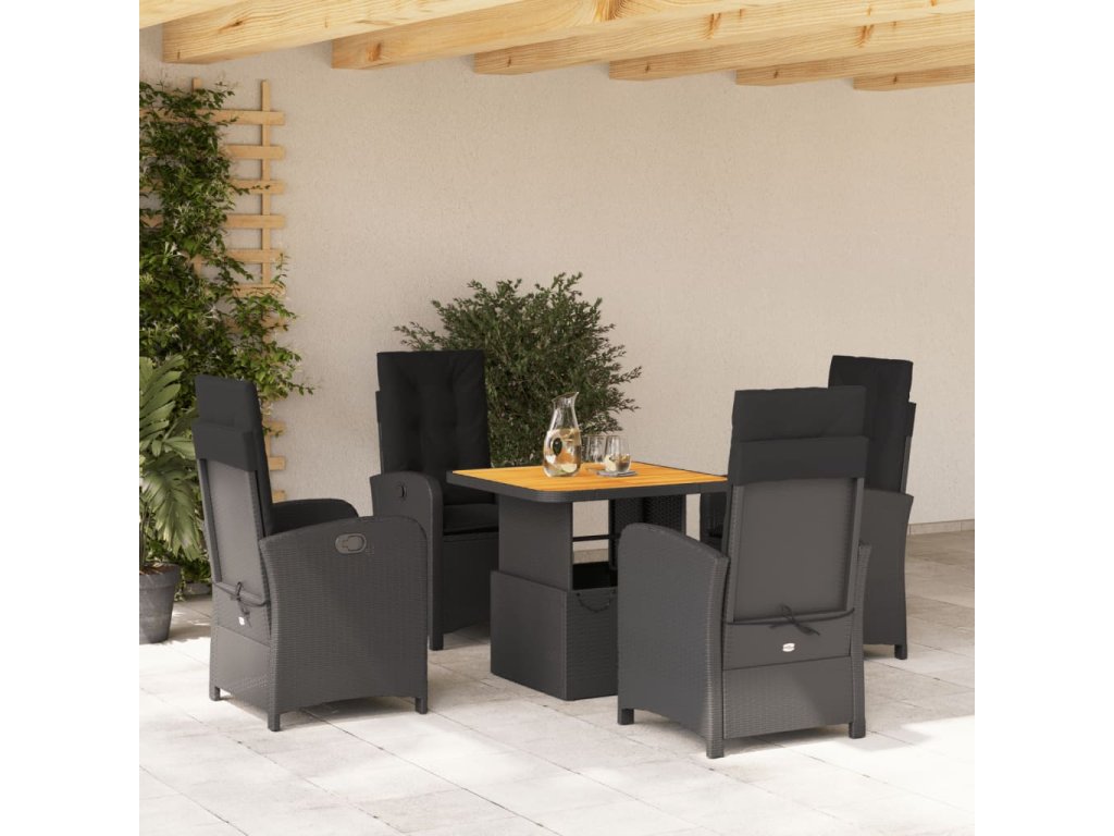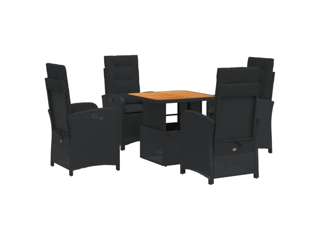 - Materiál: PE ratan, práškově lakovaná ocel, masivní akáciové dřevo s olejovou povrchovou úpravou