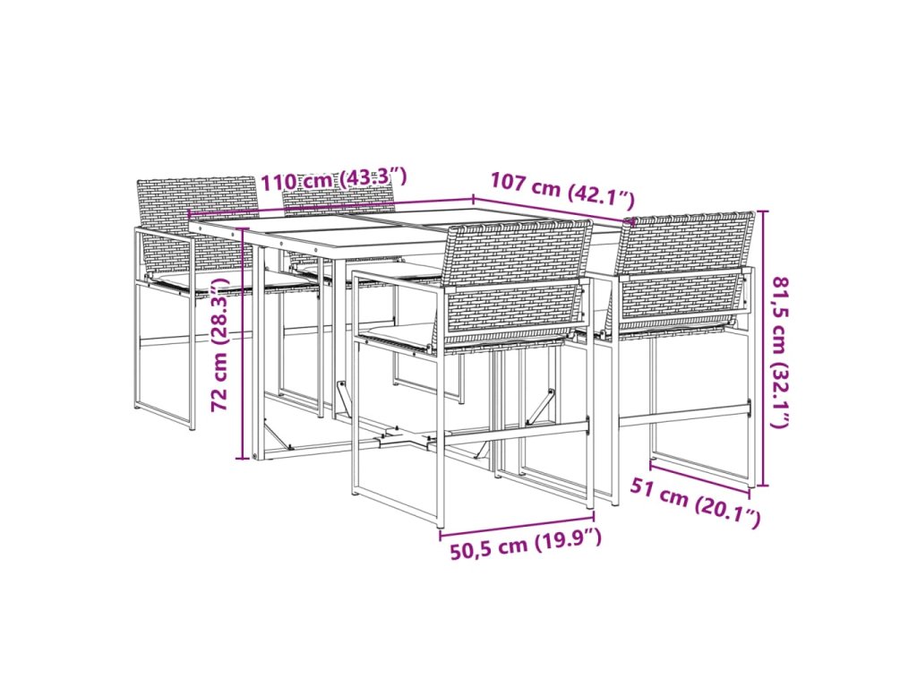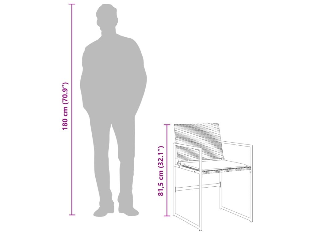 - Robustní a stabilní rám: Ocelový rám s práškovým nástřikem zajišťuje, že zahradní nábytek je pevný a stabilní pro každodenní venkovní použití.