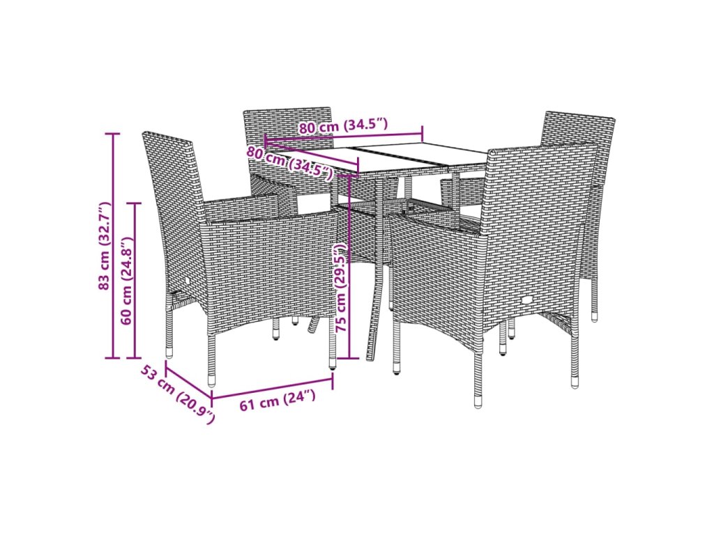 - Rozměry: 80 x 80 x 75 cm (Š x H x V)