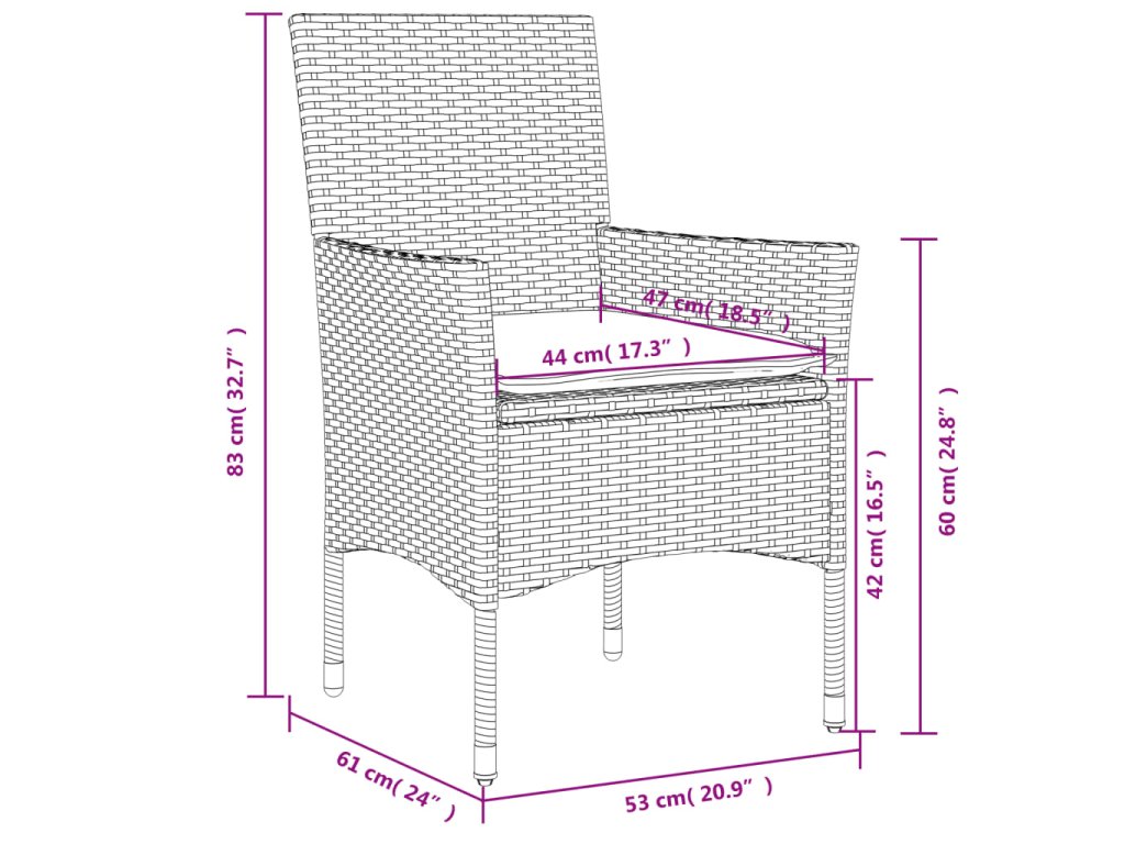 - Materiál: PE ratan, práškově lakovaná ocel