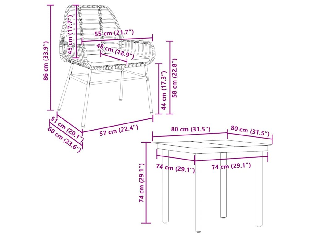 - Rozměry: 80 x 80 x 74 cm (D x Š x V)