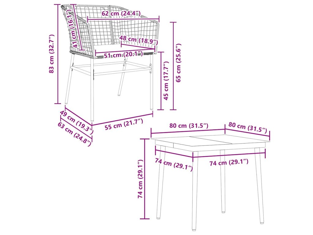 - Rozměry: 80 x 80 x 74 cm (D x Š x V)
