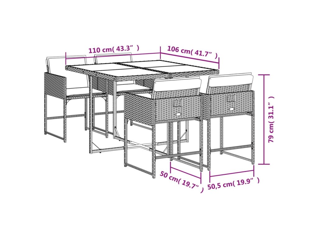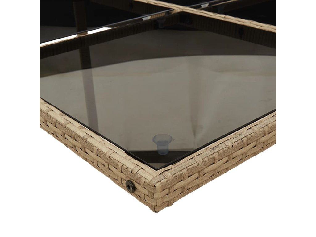 - Skleněná deska stolu: Deska venkovního stolu je zhotovena ze silného a odolného tvrzeného skla, takže ji snadno očistíte vlhkým hadříkem a zároveň do vašeho venkovního prostoru vnese nádech elegance.