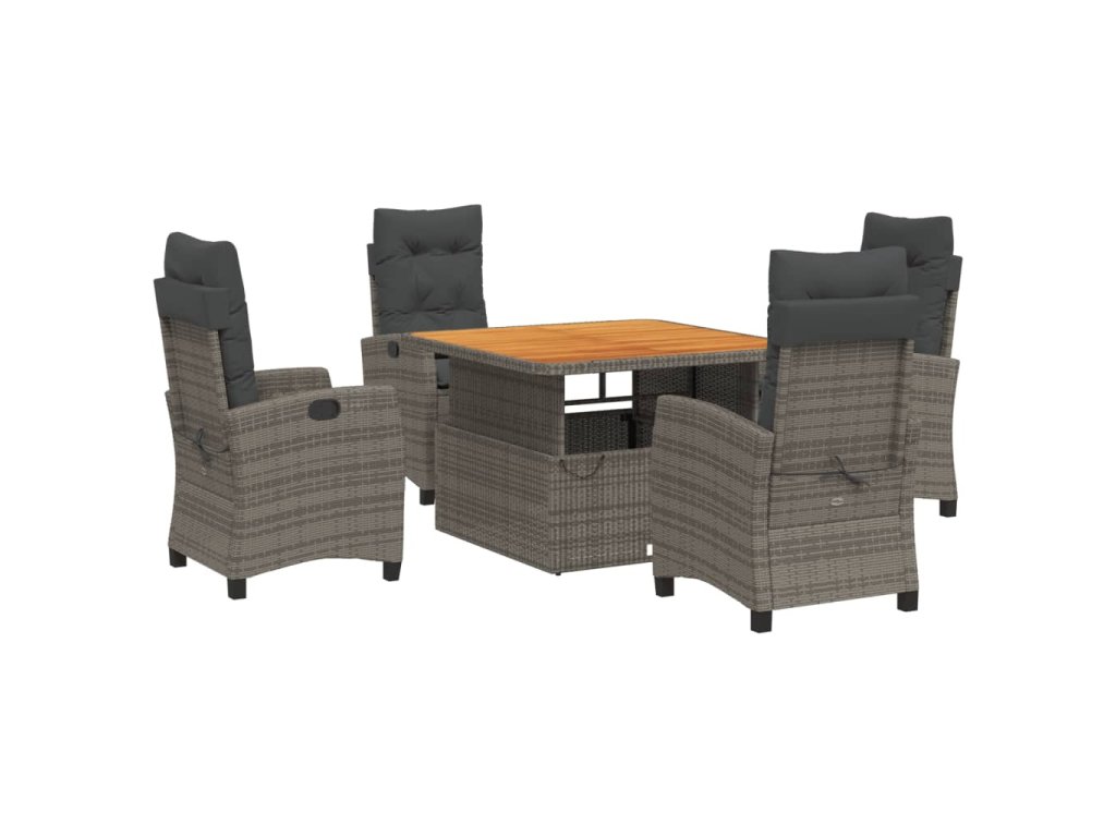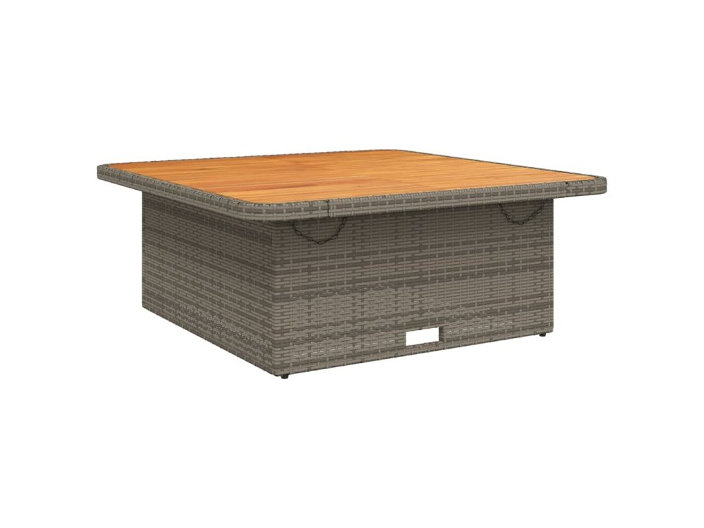 - Materiál: PE ratan, práškově lakovaná ocel, masivní akáciové dřevo s olejovou povrchovou úpravou