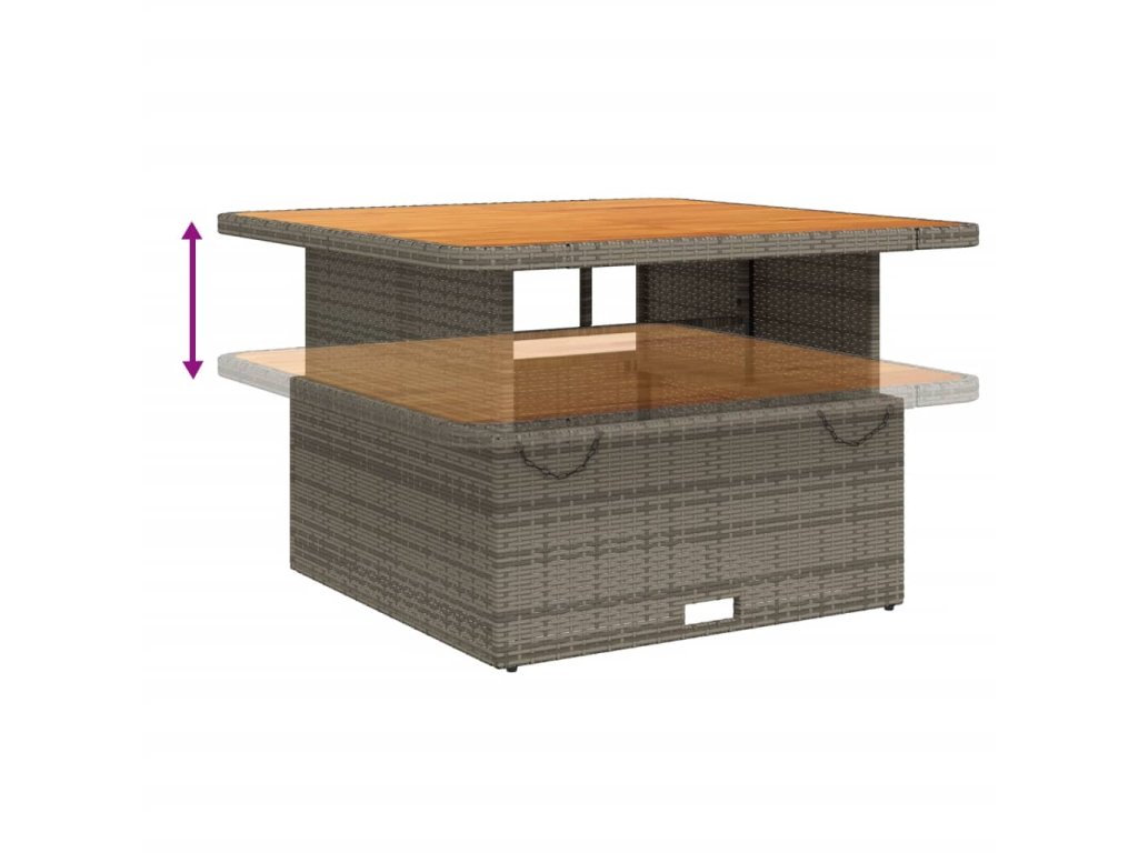 - Nastavitelná deska stolu: Stolní desku lze zvednout tak, aby stůl byl vyšší, takže jej můžete přeměnit z konferenčního stolku na jídelní. Skvěle se hodí pro návštěvy nebo pro stolování venku.