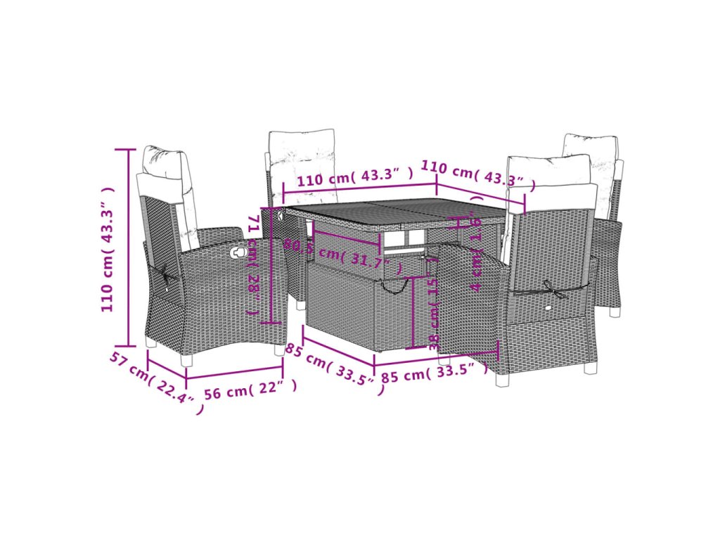 - Rozměry stolku: 110 x 110 x 40/71 cm (D x Š x V)