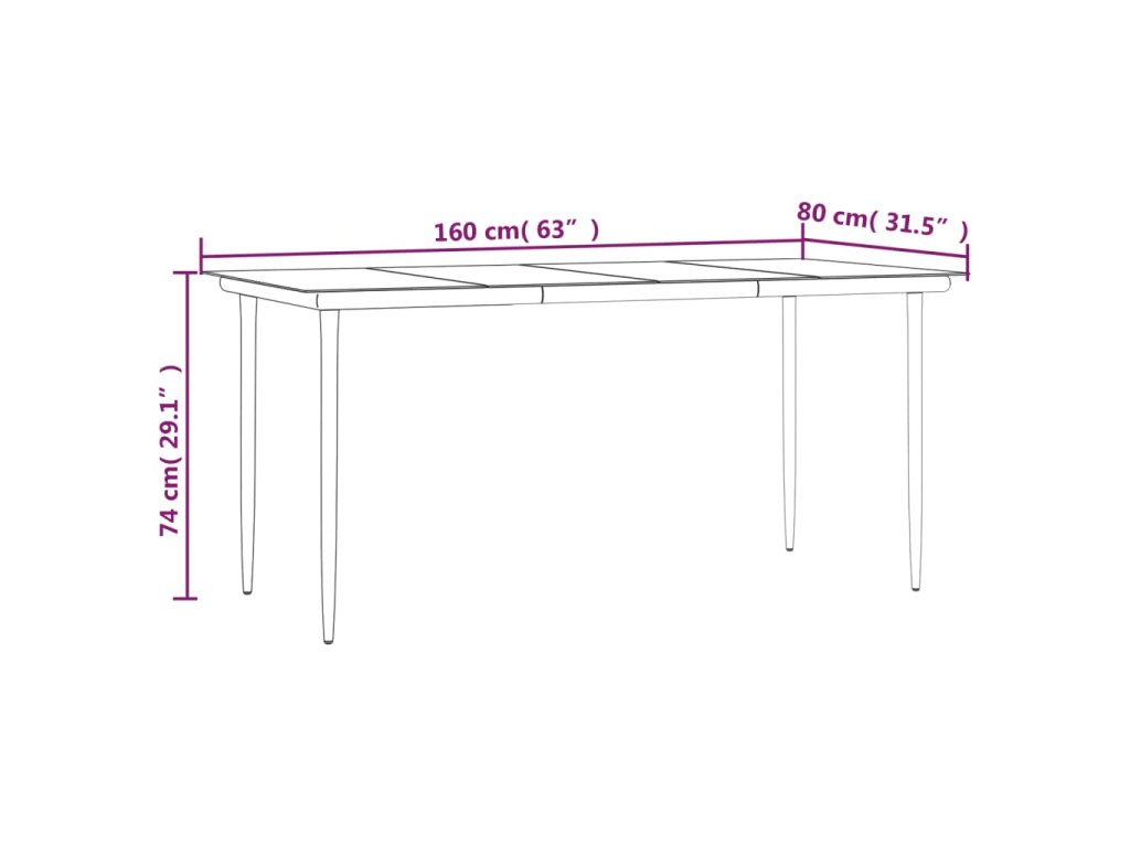 - Rozměry: 160 x 80 x 74 cm (D x Š x V)