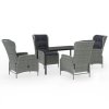 Praktický zahradní jídelní set má ocelový rám, takže je pevný a má dlouhou životnost. Polohovací židle jsou vyrobené z voděodolného PE ratanu, který nevyžaduje žádnou údržbu, hodí se proto skvěle k venkovnímu použití. Hustě polstrované podušky vám při stolování poskytnou maximální pohodlí. Potah podušky je opatřený zipem, lze ho tedy stáhnout a vyprat. Pomocí mechanismu s plynovým pístem si navíc snadno přizpůsobíte opěradlo křesla podle vlastních potřeb. Stisknutím tlačítka na boku ho sklopíte do té nejpohodlnější pozice. Hladká skleněná stolní deska, kterou jednoduše očistíte vlhkým hadříkem, je ideální k podávání jídla a pití nebo k vystavování různých dekorativních předmětů.
