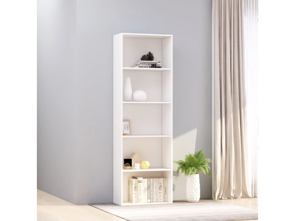 Knihovna z kvalitního kompozitního dřeva je stabilní a odolná. Je vysoká a má pět prostorných polic, které nabízí spoustu prostoru k uložení či vystavení nejrůznějších věcí, jako jsou sběratelské předměty, knihy, různé drobnosti, zarámované fotografie atd.