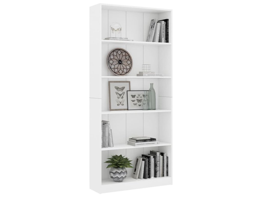 Knihovna je vyrobená z kvalitního kompozitního dřeva, je tudíž robustní, odolná a má dlouhou životnost. Pět velkých přihrádek vám poskytne spoustu místa pro přehledné ukládání časopisů, knih, DVD a multimediálních zařízení, které chcete mít po ruce, stejně jako i pro vystavení různých dekorativních předmětů. Police na knihy mají všestranný charakter, poslouží vám tedy jako dokonalé úložné řešení v předsíni i jiných místnostech.