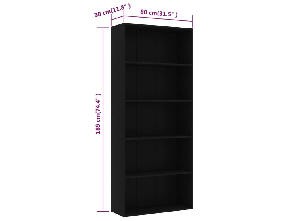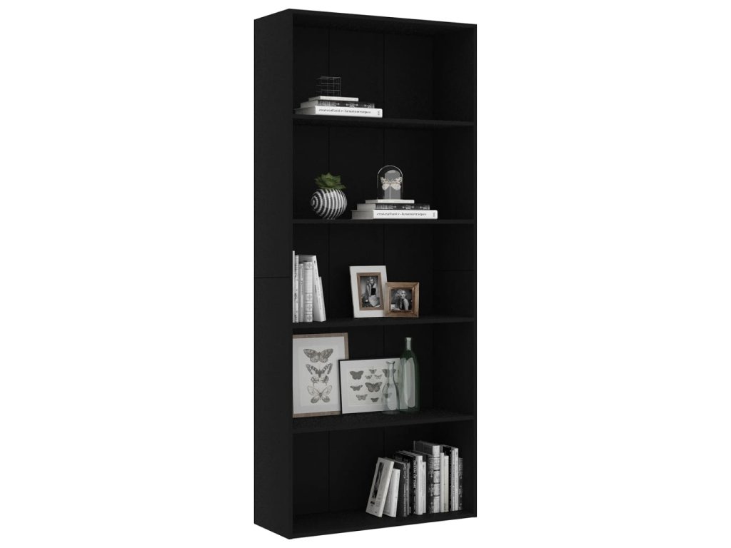 Knihovna z kvalitních desek je stabilní a odolná. Je vysoká a má 5 prostorných polic, které nabízí spoustu prostoru k uložení či vystavení nejrůznějších věcí, jako jsou sběratelské předměty, knihy, různé drobnosti, zarámované fotografie atd.