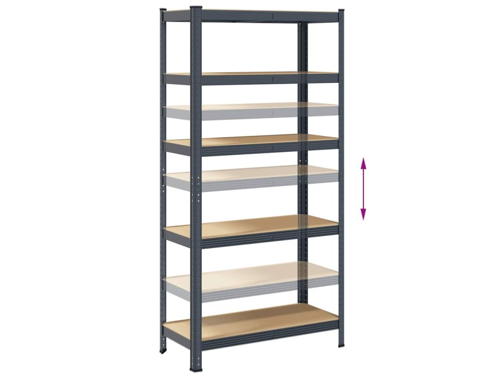- Pevný materiál: Úložný regál se skládá z ocelových rámů a dřevěných desek. Ocelové rámy zaručují robustnost a stabilitu, zatímco kompozitní dřevo nabízí pevnost, stabilitu a odolnost proti vlhkosti.