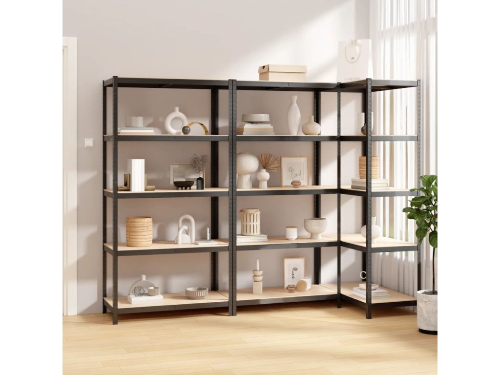 - Pevný materiál: Regály se skládají z ocelových rámů a dřevěných desek. Ocelové rámy zaručují robustnost a stabilitu, zatímco kompozitní dřevo nabízí pevnost, stabilitu a odolnost proti vlhkosti.