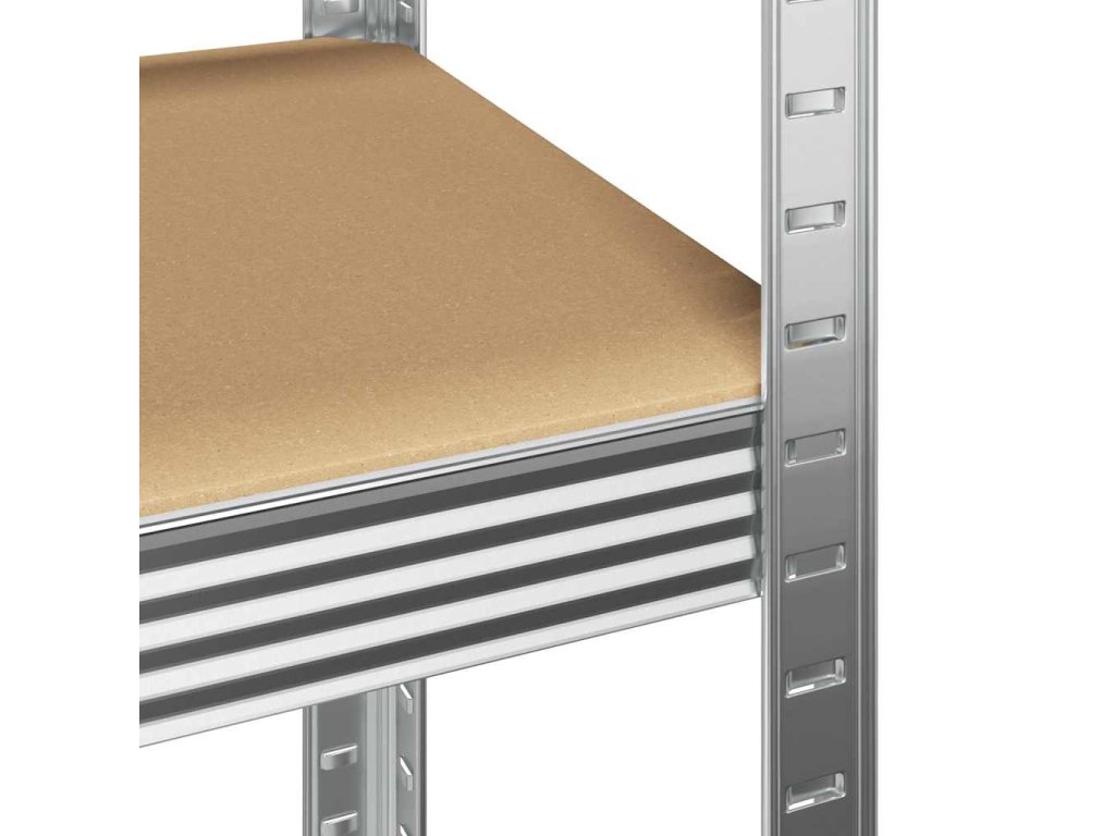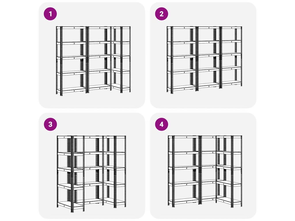 - Silná nosnost: Díky silnému materiálu, výztužné tyči pod každou policí a bezšroubovému provedení má tento garážový regál velkou nosnost.