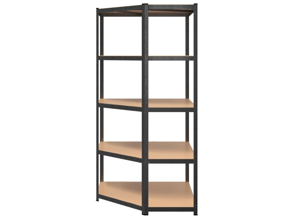 - Pevný materiál: Úložný regál se skládá z ocelových rámů a dřevěných desek. Ocelové rámy zaručují robustnost a stabilitu, zatímco kompozitní dřevo nabízí pevnost, stabilitu a odolnost proti vlhkosti.