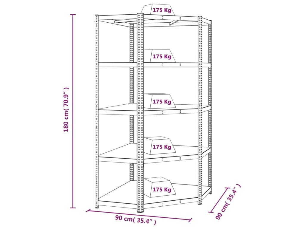 Tento robustní rohový regál je vynikající volbou pro domácí i komerční skladování a poskytuje dostatek prostoru pro úhledné uspořádání všech položek.