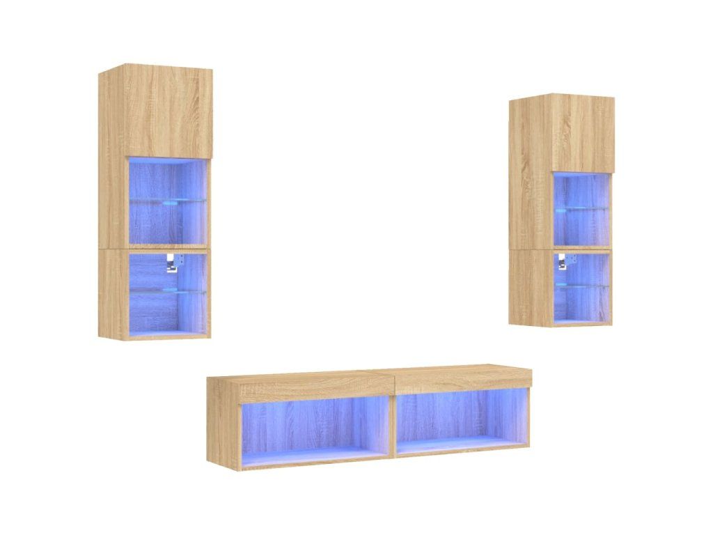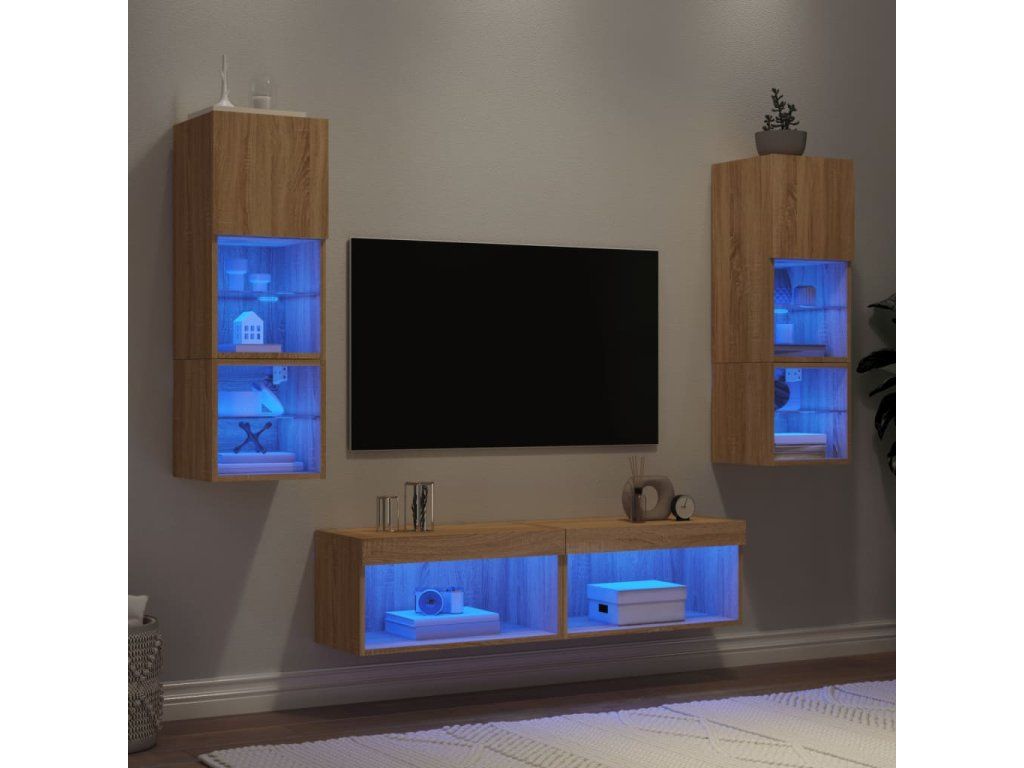 - RGB LED světla: TV jednotka je vybavena živými RGB LED světly. Různé přizpůsobitelné nabídky vám umožní snadno změnit barvu světel nebo dokonce i nastavit světla tak, aby se přizpůsobila automaticky. Tato LED světla nejen podtrhují moderní vzhled plovoucí TV skříňky, ale také jí dodávají na módním půvabu.