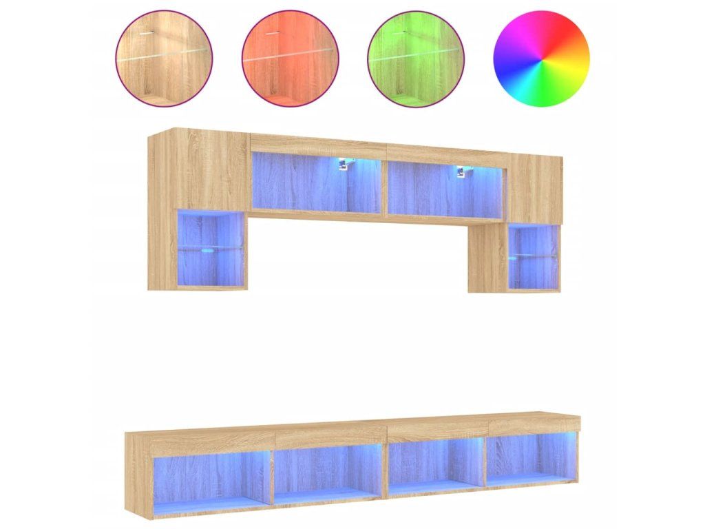 - RGB LED světla: TV jednotka je vybavena živými RGB LED světly. Různé přizpůsobitelné nabídky vám umožní snadno změnit barvu světel nebo dokonce i nastavit světla tak, aby se přizpůsobila automaticky. Tato LED světla nejen podtrhují moderní vzhled plovoucí TV skříňky, ale také jí dodávají na módním půvabu.