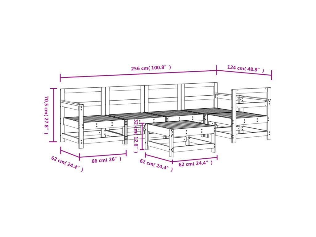 - Rozměry středové pohovky: 62 x 62 x 70,5 cm (D x Š x V)
