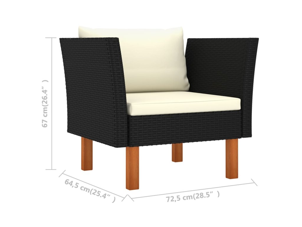 Sedací souprava na zahradu má rám z práškově lakované oceli opletený PE ratanem, takže toho hodně vydrží a snadno se čistí. Nohy z masivního eukalyptového dřeva zase přispívají k lepší odolnosti a stabilitě. Podušky vám při odpočinku poskytnou maximální pohodlí. Jejich potahy jsou opatřené zipy, aby se vám snadněji sundávaly a praly. Vzhledem k lehké konstrukci lze soupravu bez potíží přesouvat.