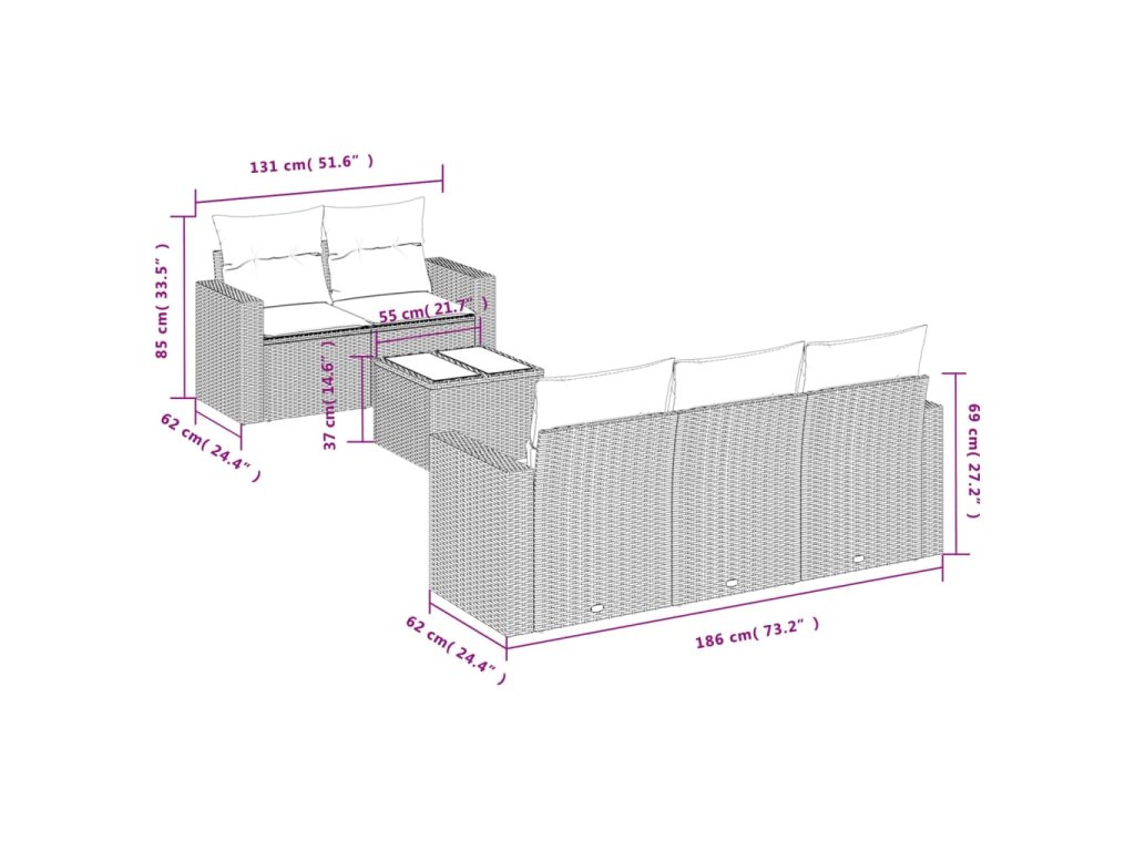 Tato zahradní sedací souprava je dokonalým doplňkem vaší zahrady, terasy nebo dvorku a poskytne vám pohodlné a příjemné místo, kde si můžete povídat s rodinou a přáteli nebo jen tak odpočívat a užívat si pobyt venku.