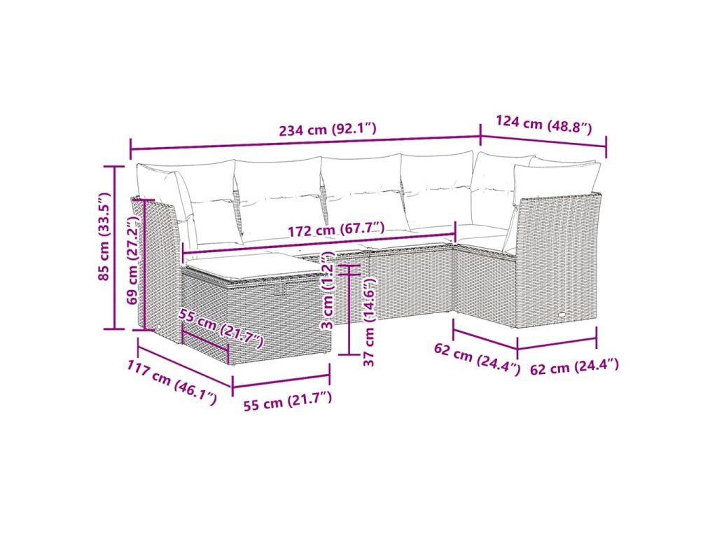Tato zahradní sedací souprava je dokonalým doplňkem vaší zahrady, terasy nebo dvorku a poskytne vám pohodlné a příjemné místo, kde si můžete povídat s rodinou a přáteli nebo jen tak odpočívat a užívat si pobyt venku.