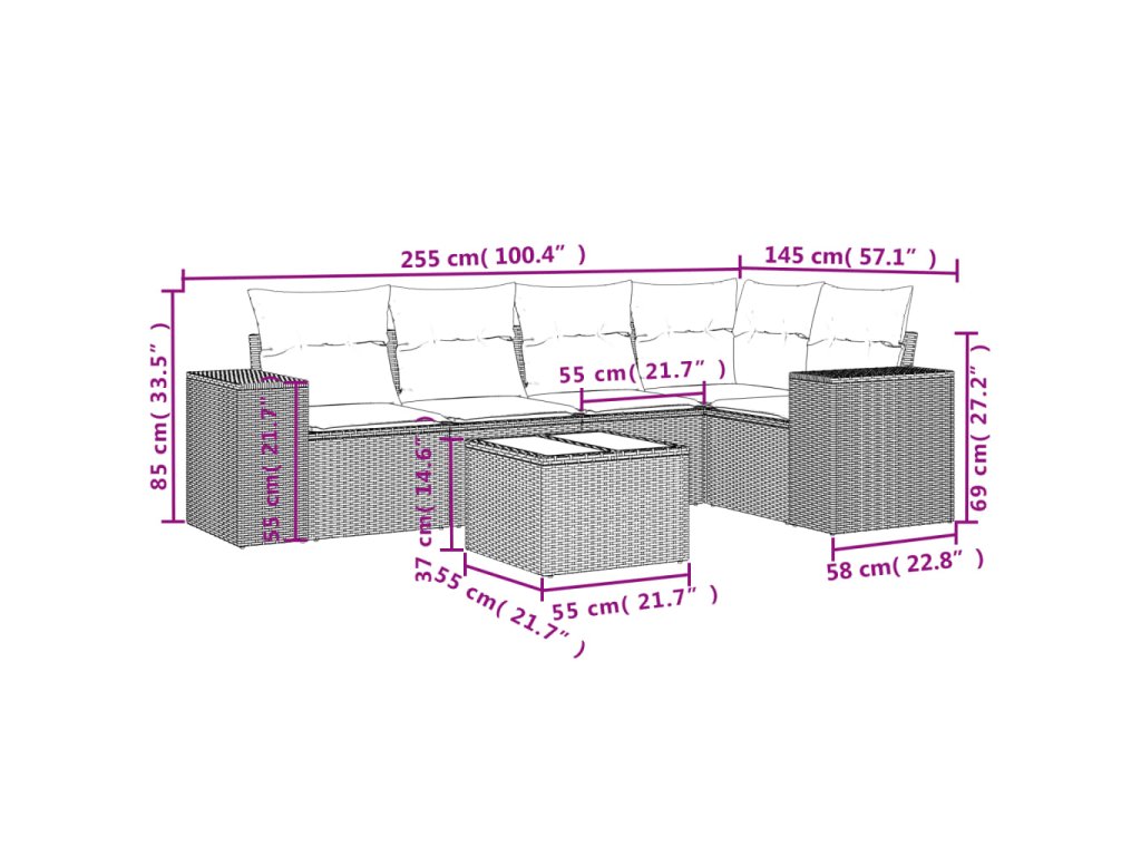 Tato zahradní sedací souprava je dokonalým doplňkem vaší zahrady, terasy nebo dvorku a poskytne vám pohodlné a příjemné místo, kde si můžete povídat s rodinou a přáteli nebo jen tak odpočívat a užívat si pobyt venku.
