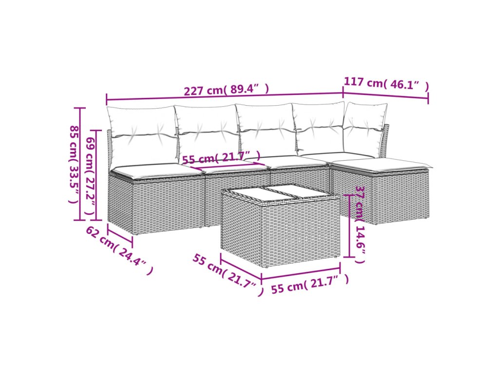 Tato zahradní sedací souprava je dokonalým doplňkem vaší zahrady, terasy nebo dvorku a poskytne vám pohodlné a příjemné místo, kde si můžete povídat s rodinou a přáteli nebo jen tak odpočívat a užívat si pobyt venku.