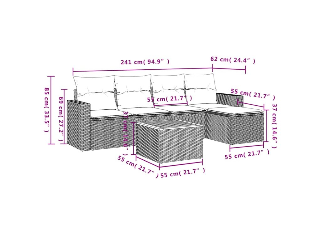 Tato zahradní sedací souprava je dokonalým doplňkem vaší zahrady, terasy nebo dvorku a poskytne vám pohodlné a příjemné místo, kde si můžete povídat s rodinou a přáteli nebo jen tak odpočívat a užívat si pobyt venku.