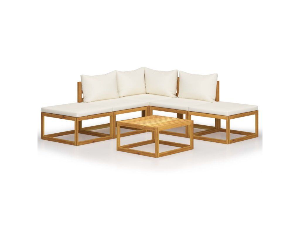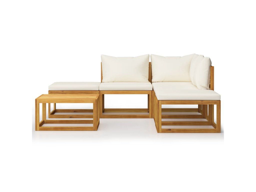 Rám sedací soupravy z masivního akáciového dřeva je pevný, odolný a má dlouhou životnost. Dřevo je napuštěné olejem, a proto je tato sedací souprava vhodná pro venkovní použití. Odnímatelné podušky na sedáky a opěradla jsou silně polstrované, a poskytují úžasné pohodlí při sezení. Konferenční stolek v unikátním roštovém provedení je také součástí balení. Unikátní modulární design vám umožňuje všechny díly přestavovat a upravovat dle momentálních potřeb.