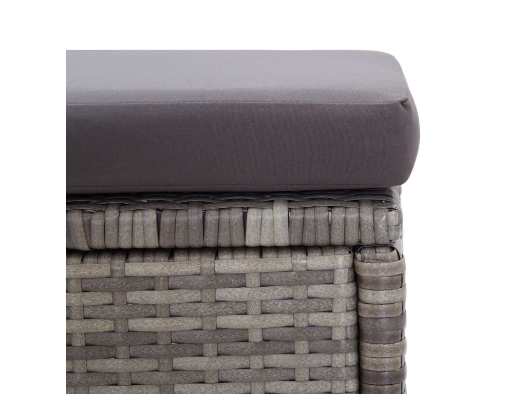 - Materiál: polyratan, textil (100% polyester), práškově lakovaná ocel