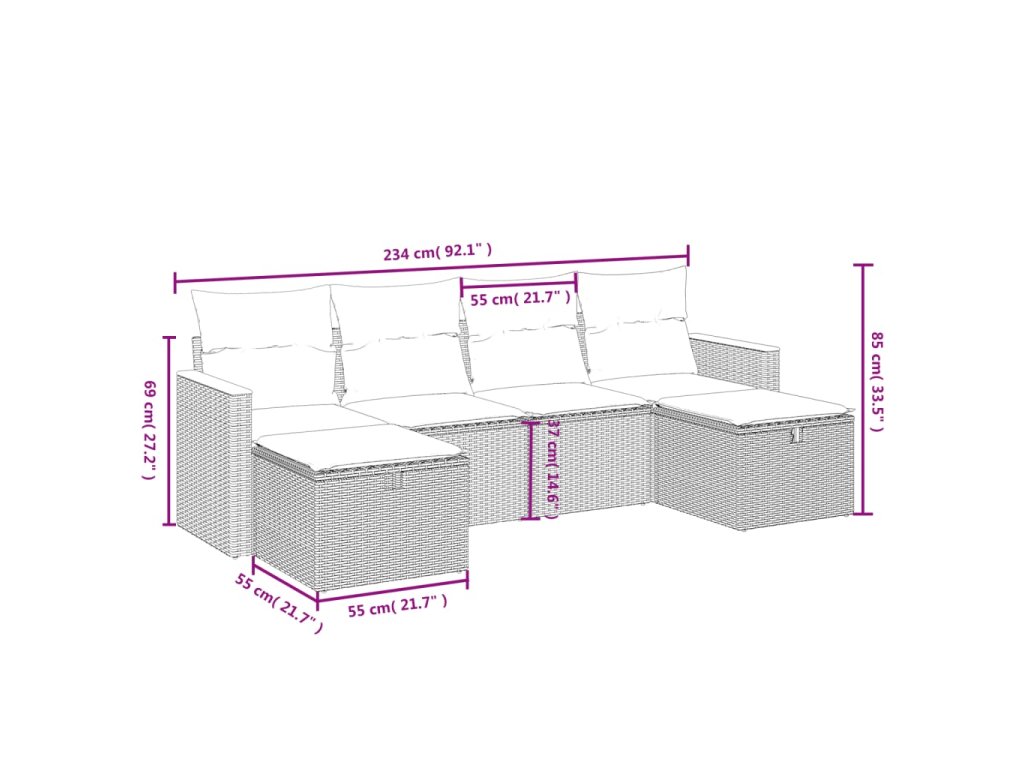 Tato zahradní sedací souprava je dokonalým doplňkem vaší zahrady, terasy nebo dvorku a poskytne vám pohodlné a příjemné místo, kde si můžete povídat s rodinou a přáteli nebo jen tak odpočívat a užívat si pobyt venku.